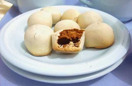 - Adonan lentur dan kalis lalu di potong-potong, di pipihkan agak tipis, di beri isi dan bentuk setengah bulat